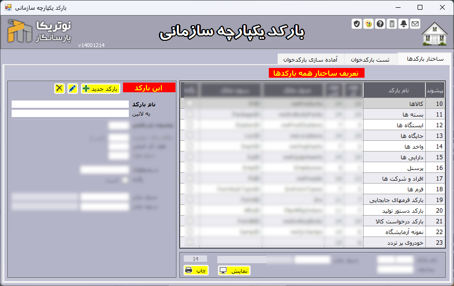 - تمامی بارکدهای برنامه را میتوانید به سلیقه و نیاز خودتان دستکاری کنید. (هم محتوا و هم شکل چاپ)